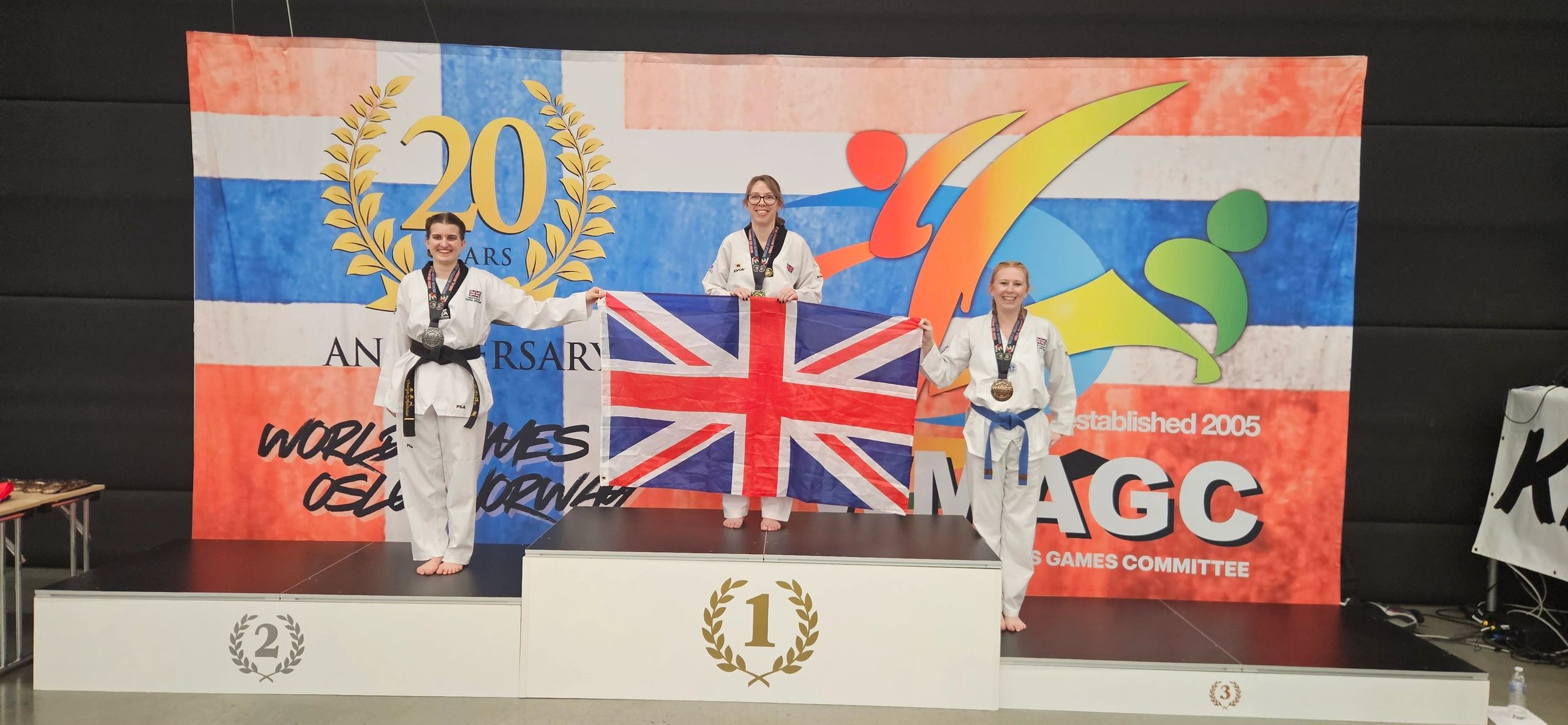 Great Britain Martial Arts Team Athlete Molly Thomas, on top of the Podium after winning the Gold Medal at the 2017 World Martial Arts Games.